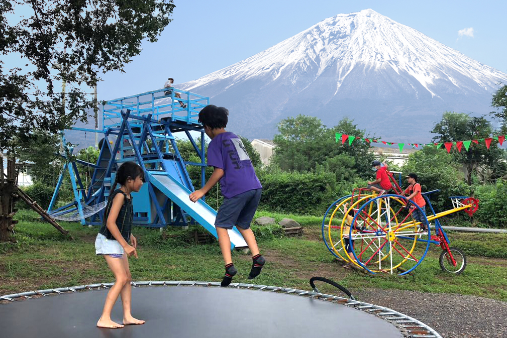 富士山が目前にそびえ立つ『富士山ワイルドアドベンチャー』は、普通のキャンプ場とは一味違います。東京ドーム1つ分(14,000坪)という広大な敷地は、アウトドアパークとなっており、動植物の宝庫です。雑木林・ヒノキ林・スギ林・竹林などを巡るハイキングコースはもちろん、あるがままの自然を活かした、ワイルドな自然共生型アスレチックも楽しめます。